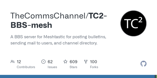ProdigalFrog@slrpnk.net to Meshtastic@mander.xyzEnglish · 20 days agoTC2-BBS-mesh: A BBS server for Meshtastic for posting bulletins, sending mail to users, and channel directory.github.comexternal-linkmessage-square2fedilinkarrow-up148arrow-down10