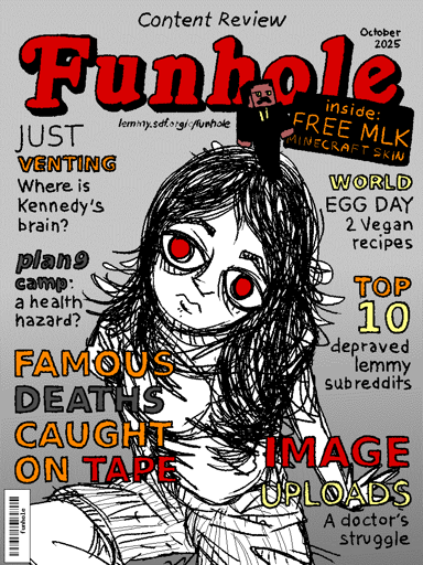 pmjv@lemmy.sdf.org to Funhole@lemmy.sdf.org · 15 天前the october issuesnac.lab8.czimagemessage-square35fedilinkarrow-up1128arrow-down13