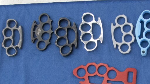 Brass knuckles are usually a single set of rings that fits on someone’s hand. A punch can inflict serious injuries.